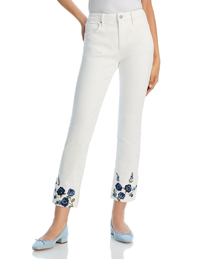 Колетт X Blue Bouquet Узкие укороченные джинсы с высокой посадкой в кремовом цвете Driftwood, слоновая кость/кремовый