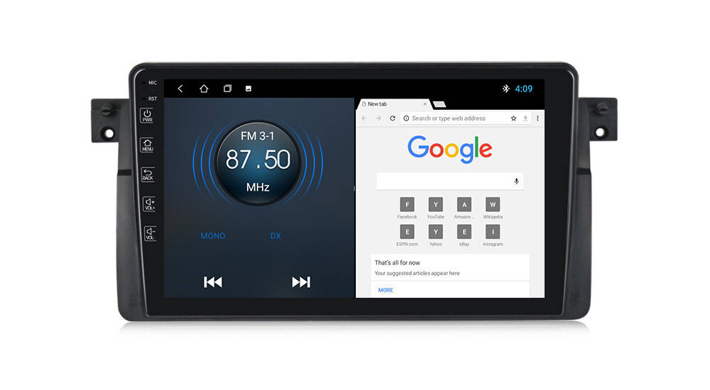 9" дюймов экран HD разрешение 1024x600 Ёмкостный морозостойкий сенсор, мультитач до 5 касаний (например масштабирование и вращение карты навигации 2-мя пальцами), отзывчивое и легкое касание - так же, как на современных смартфонах и планшетах.Экран позволяет воспроизводить видео в очень хорошем качестве, яркие, сочные цвета. Большие углы обзора экрана позволяют наслаждаться просмотром с любого сидения вашего автомобиля. Предусмотрено деление экрана на две части, что дает возможность одновременно использовать два приложения, например, навигация и радио.