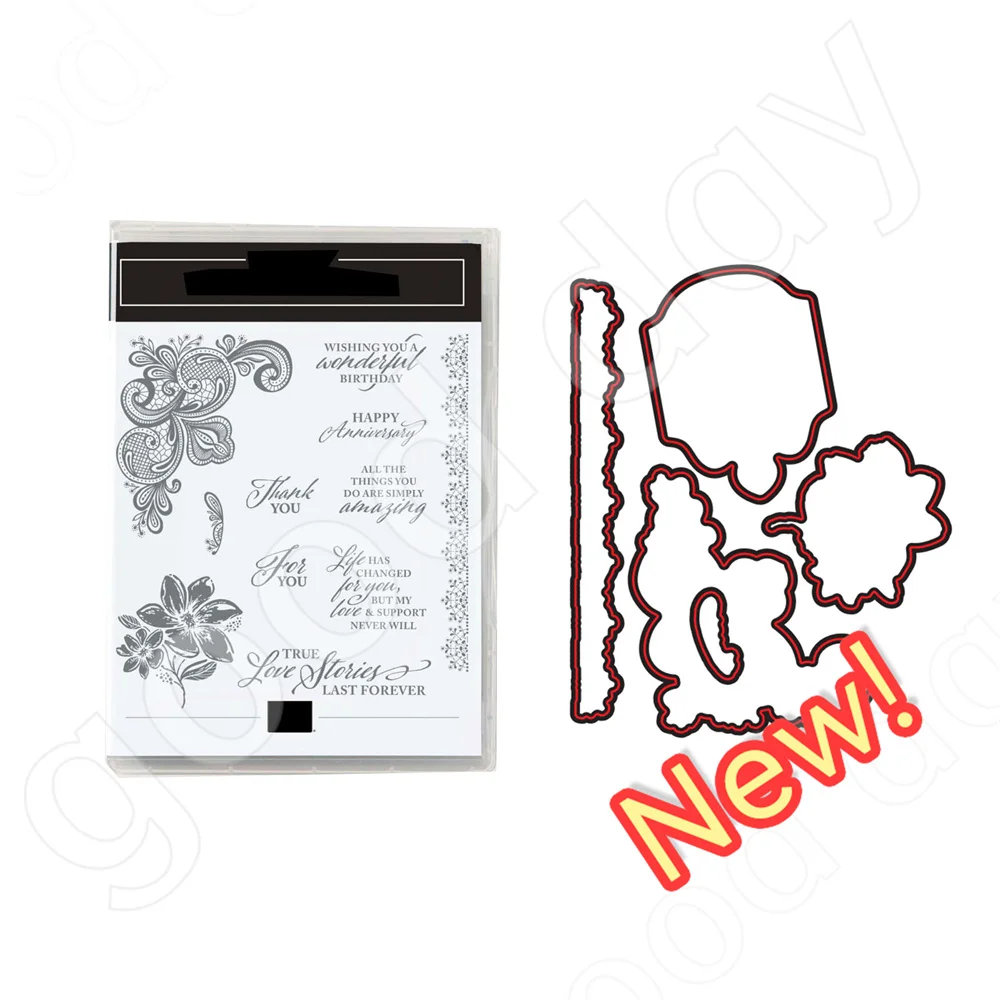 Flowers Blessing Words Clear Stamps or Metal Cutting Dies Sets for DIY Greeting card Craft Making Scrapbooking 2023 New Arrival
