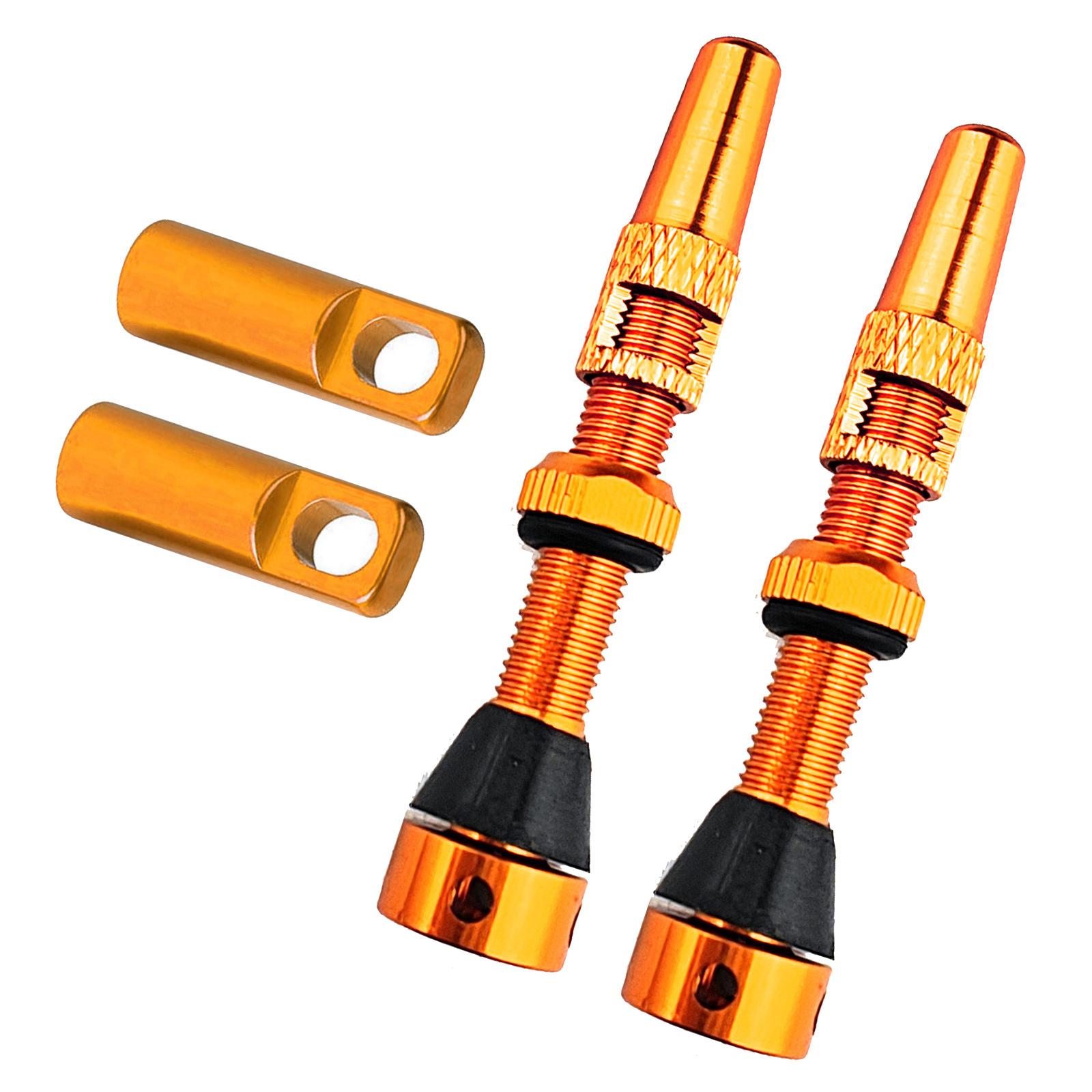 Шток клапана бескамерной шины Presta 60 мм, легкий сплав, шток клапана Presta с инструментом для снятия сердечника клапана и колпачками штока клапана оранжевый