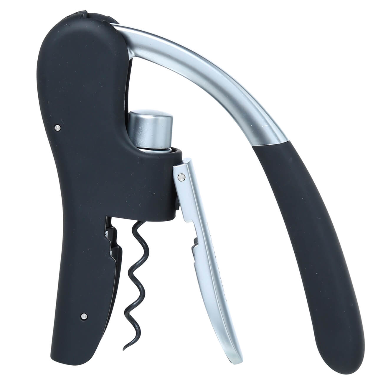 Штопор рычажный, 16 см, с захватом, с резаком для фольги, металл/пластик, черный, Barman