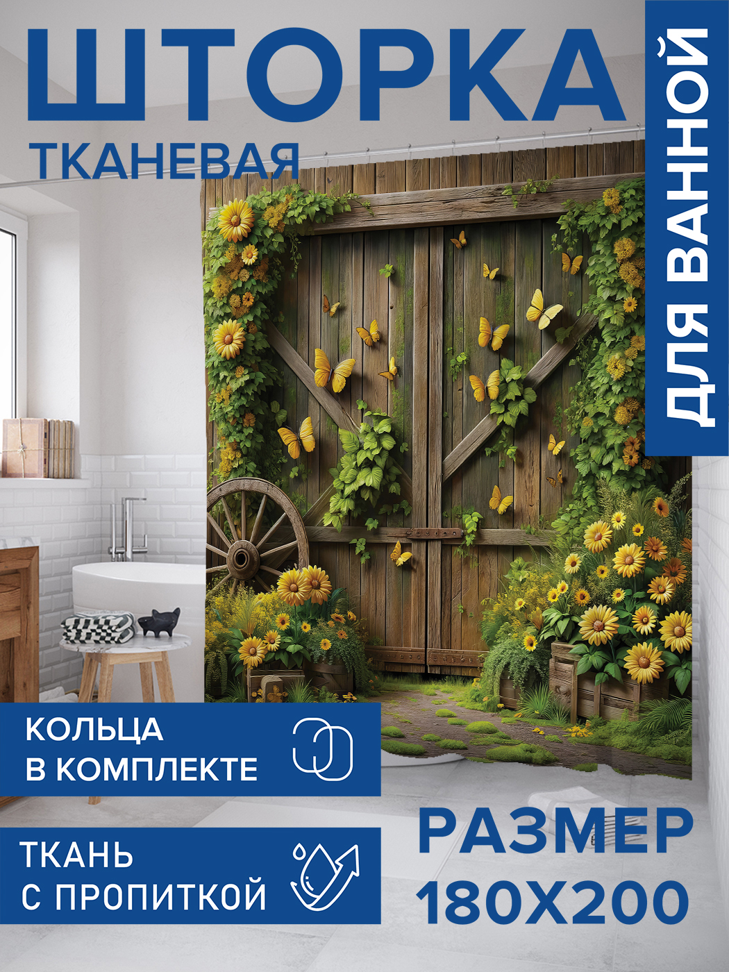 Штора для ванной тканевая JoyArty "Цветочный ворота", 180х200, sc_429824, Желтый