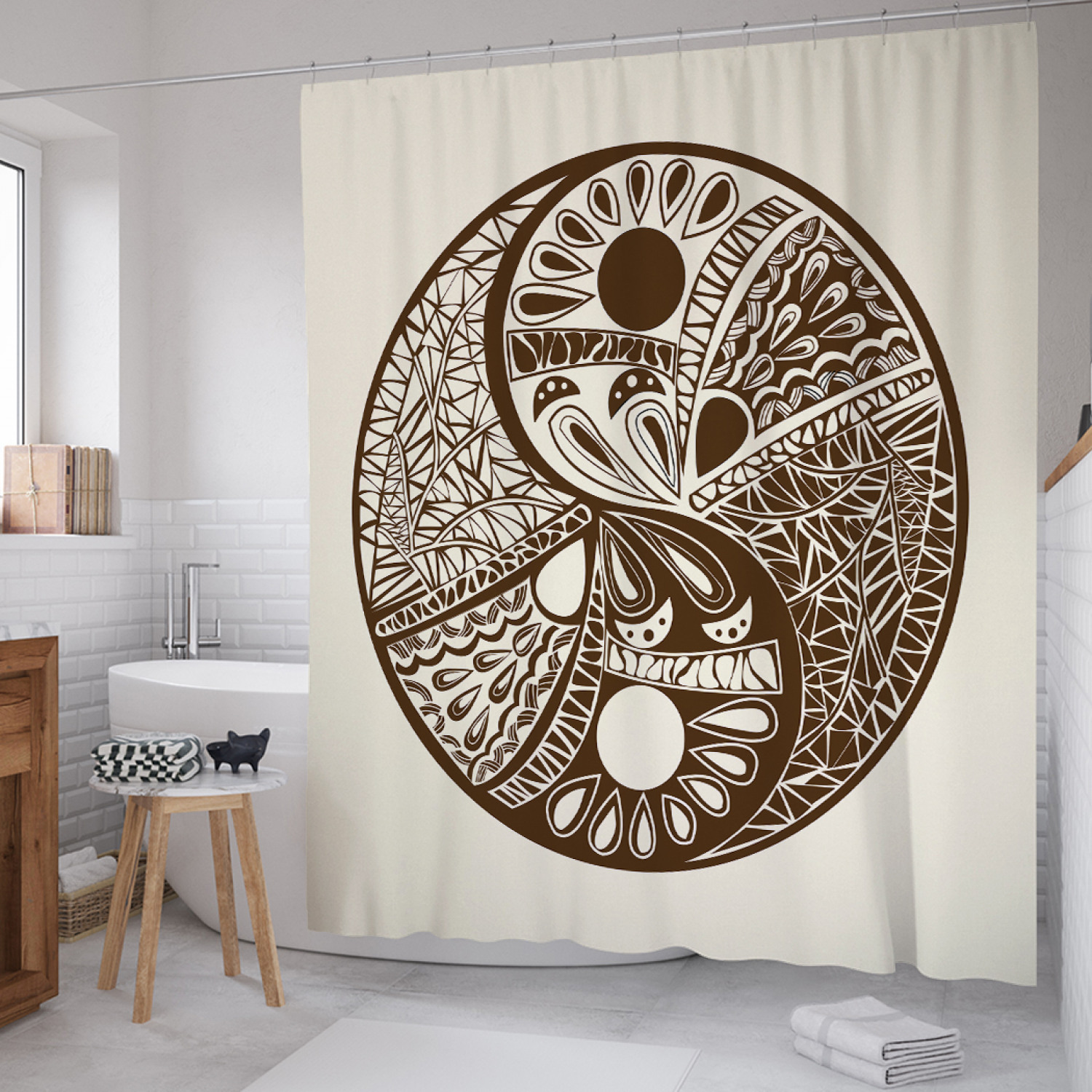 Штора для ванной JoyArty "Винтажный Инь и ян" из сатена, 180х200 см с крючками, Бежевый, Винтажный Инь и ян