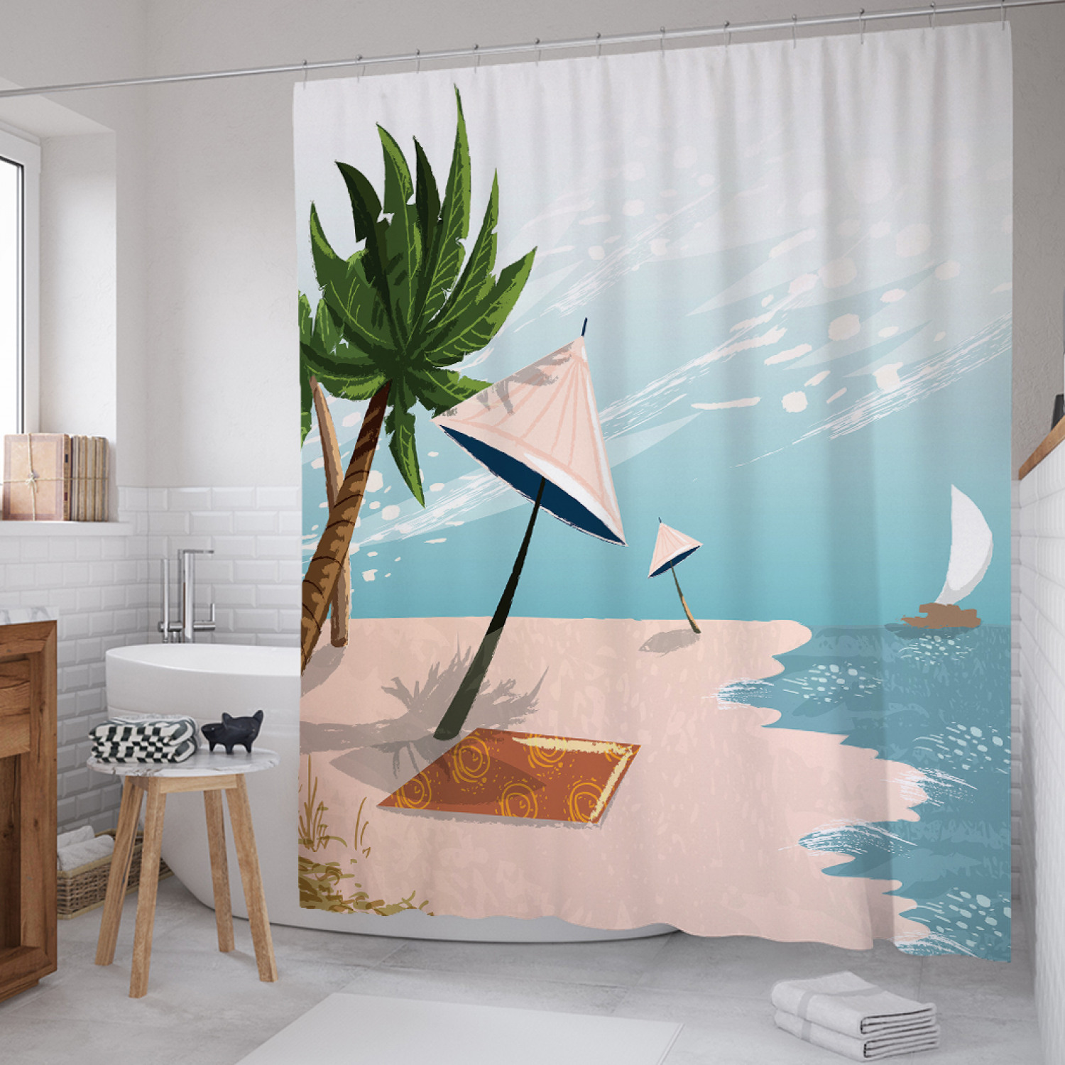 Штора для ванной JoyArty "Навесы от солнца" из сатена, 180х200 см с крючками, Голубой, Навесы от солнца