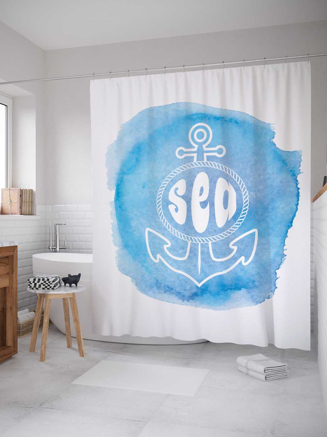 Штора для ванной JoyArty "Якорь моря" из сатена, 180х200 см с крючками