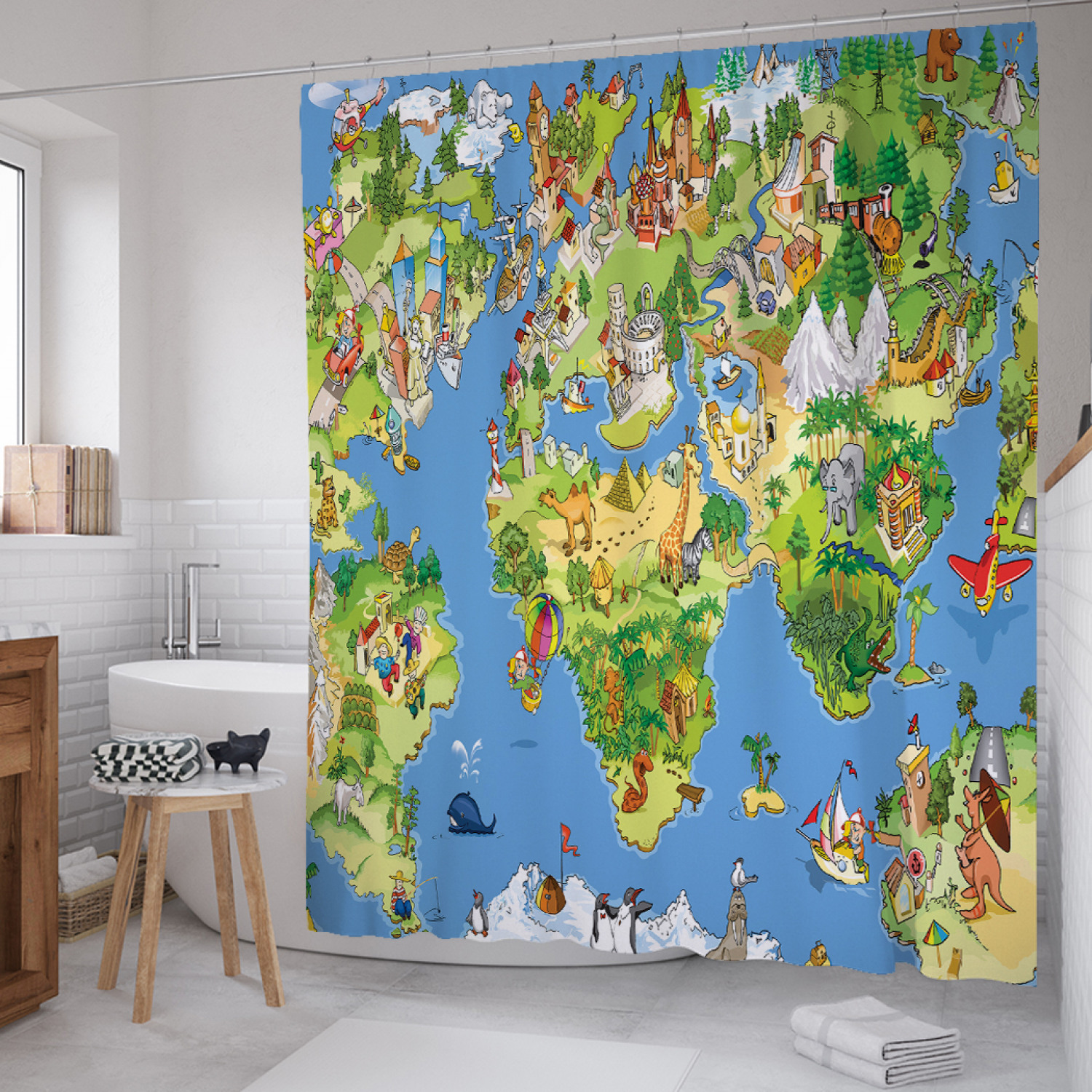 Штора (занавеска) для ванной JoyArty "Карта познания" из сатена, 180х200 см с крючками, Голубой, Карта познания