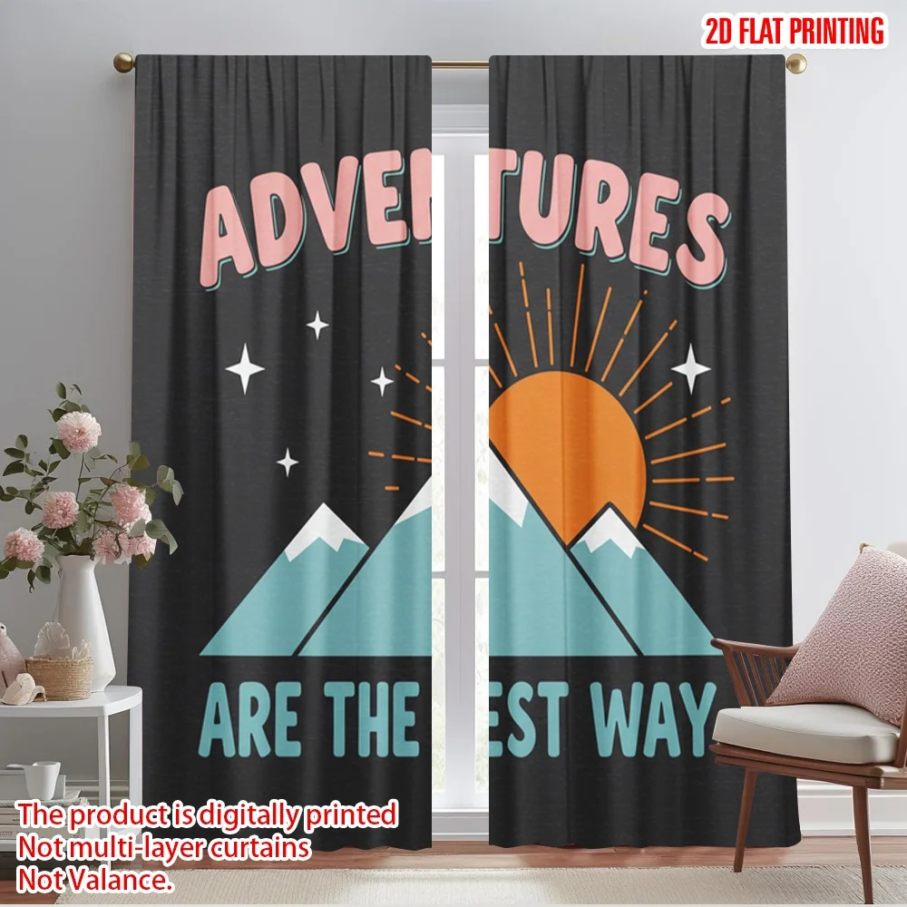 2pcs 2D flat printing Curtain Mountain Adventure Best Fabric Without Electricity Family Party Use for All Occasions