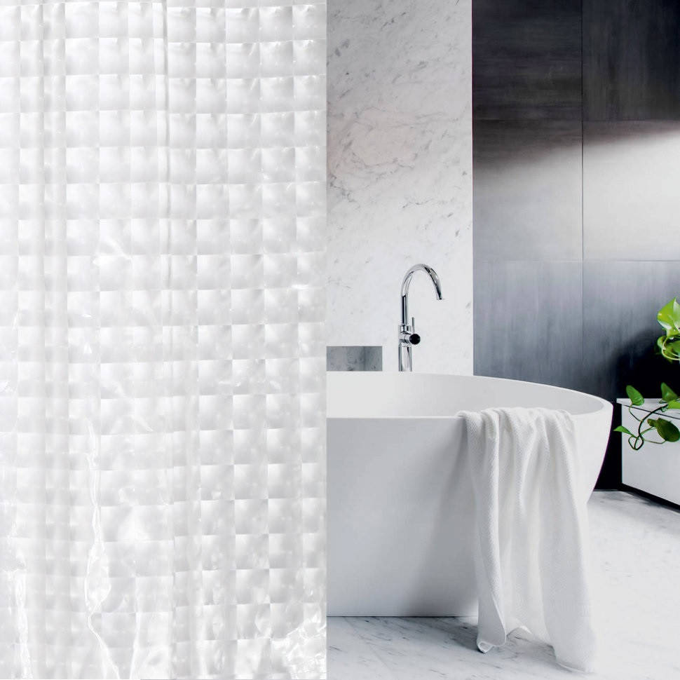 Шторы для душа или ванной с оригинальным объемным узором, который визуально увеличит пространство Вашей ванной или душевой комнаты.
