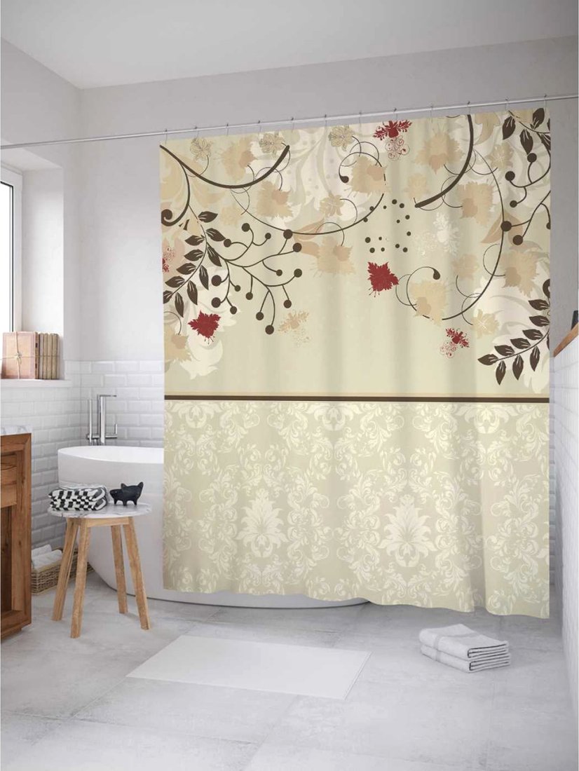 форма прямоугольная, материал шторки полиэстер, кольца в комплекте, 180х200 см, бежевый/рисунок