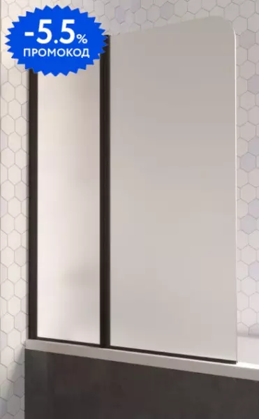 Шторка на ванну стеклянная «Vegas Glass» E2V Lux ST 115/150 сатин/чёрная матовая левая