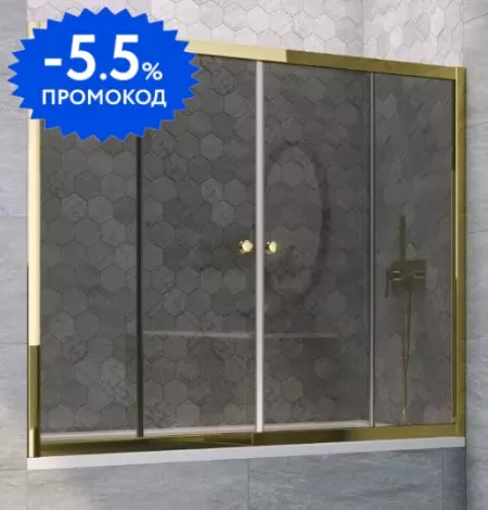 Шторка на ванну стеклянная «Vegas Glass» Z2V Tur Novo 160/140 графит/золото глянцевое