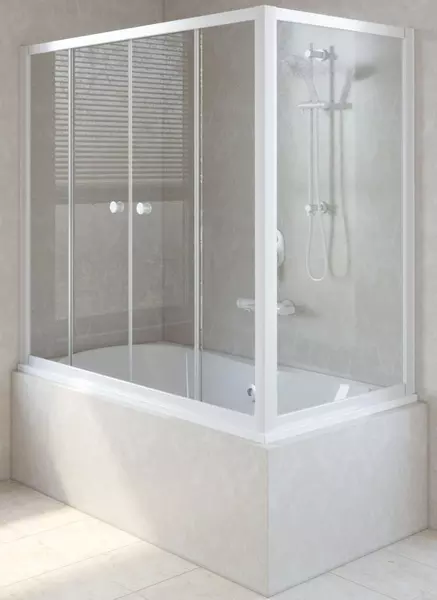 Шторка на ванну стеклянная «Vegas Glass» Z2V+ZVF Novo 150/75/140 прозрачная/белая универсальная