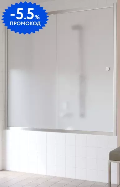 Шторка на ванну стеклянная «Vegas Glass» ZV Tur Novo 160/140 сатин/хром универсальная