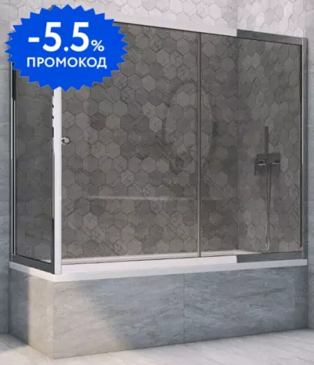 Шторка на ванну стеклянная «Vegas Glass» ZV+ZVF Tur Novo 170/75 графит/хром глянцевый универсальная