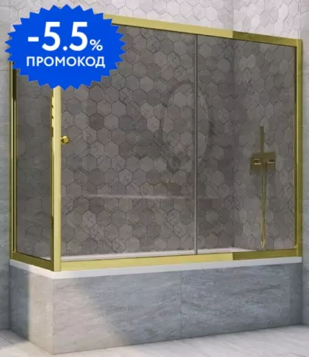 Шторка на ванну стеклянная «Vegas Glass» ZV+ZVF Tur Novo 170/80 графит/золото глянцевое универсальная