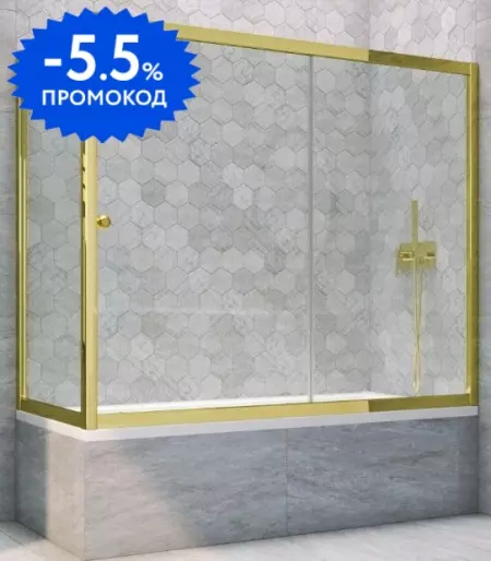 Шторка на ванну стеклянная «Vegas Glass» ZV+ZVF Tur Novo 190/85 прозрачная/золото глянцевое универсальная