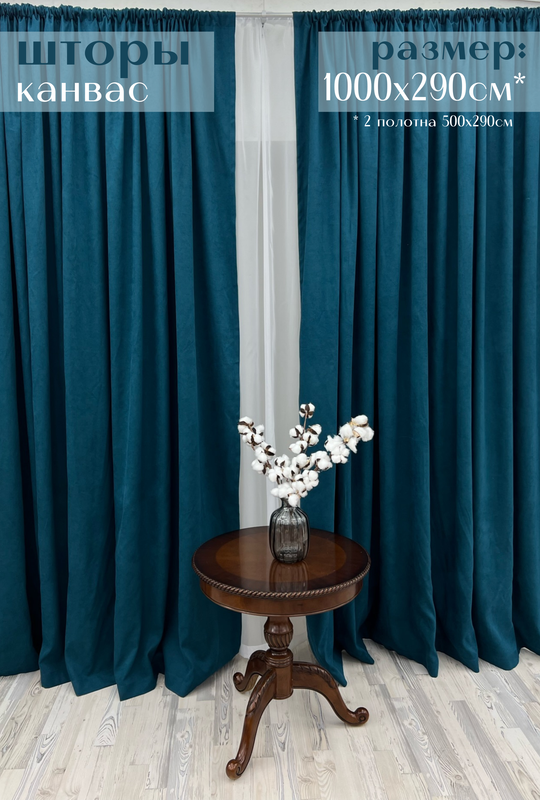 Шторы Милкитекс Канвас 1000х290см (500х290см - 2шт), сине-зеленые, Канвас