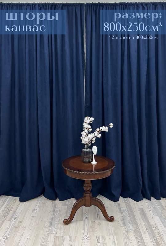 Шторы Милкитекс "Канвас" 800х250см 400х250см - 2шт синие, Канвас
