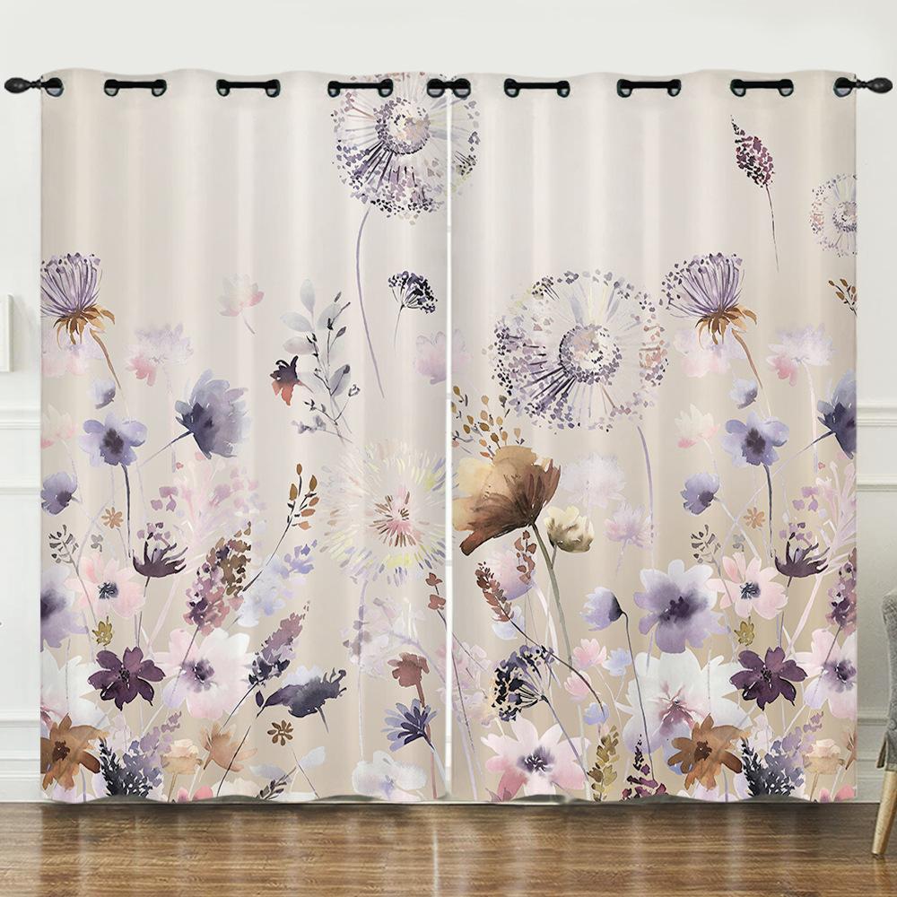 Шторы Простые Пасторальные Одуванчик 3D Цифровая Печать Светонепроницаемая Штора На Люверсах 97cm*114cm*2