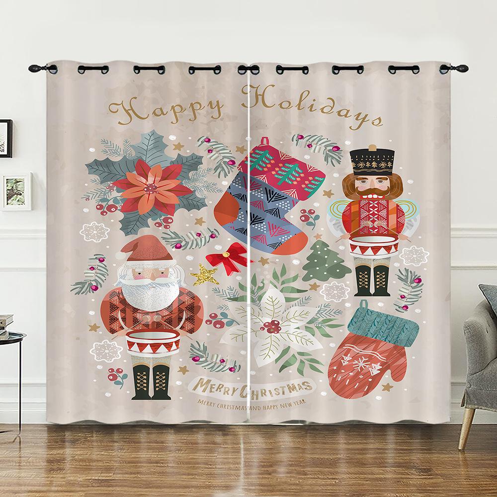Шторы Рождественская Иллюстрация 3D Цифровая Печать Светонепроницаемая Штора Перфорированная Спальня Гостиная 97cm*114cm*2