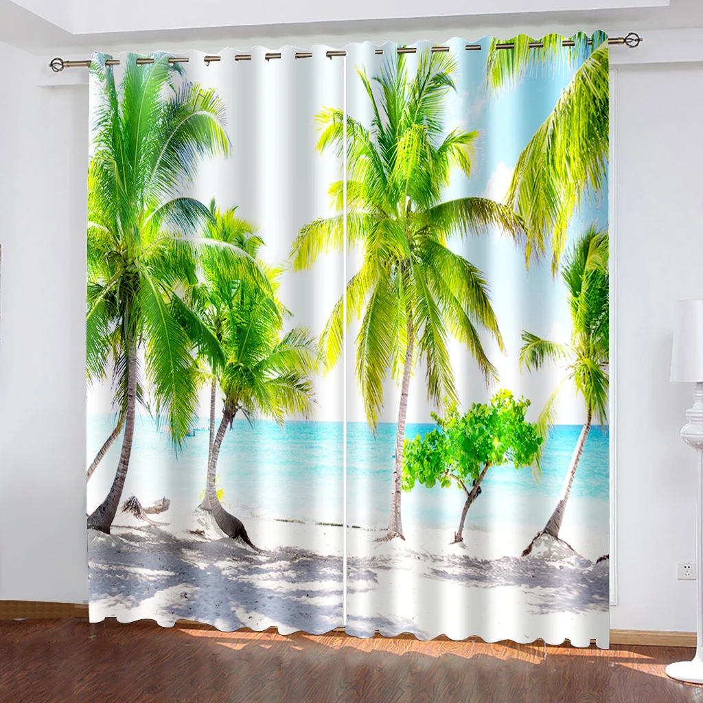 Шторы блэкаут 3D для украшения дома, современные занавески на зеленое пляжное дерево, 3D занавески для гостиной, спальни