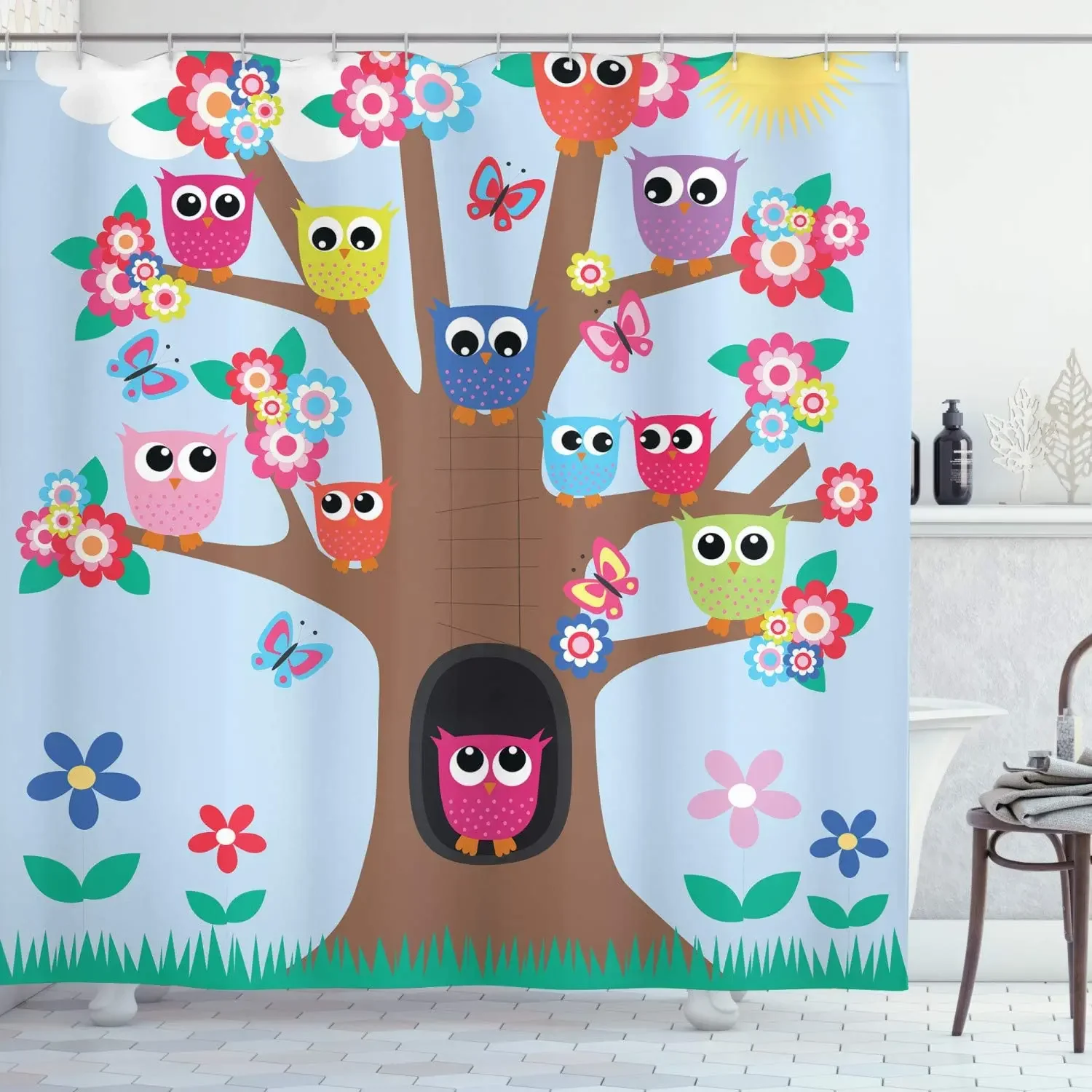 Шторы для душа с рисунками кошек и собак, водонепроницаемые декоративные занавески с крючками для ванной комнаты, с милым рисунком животных