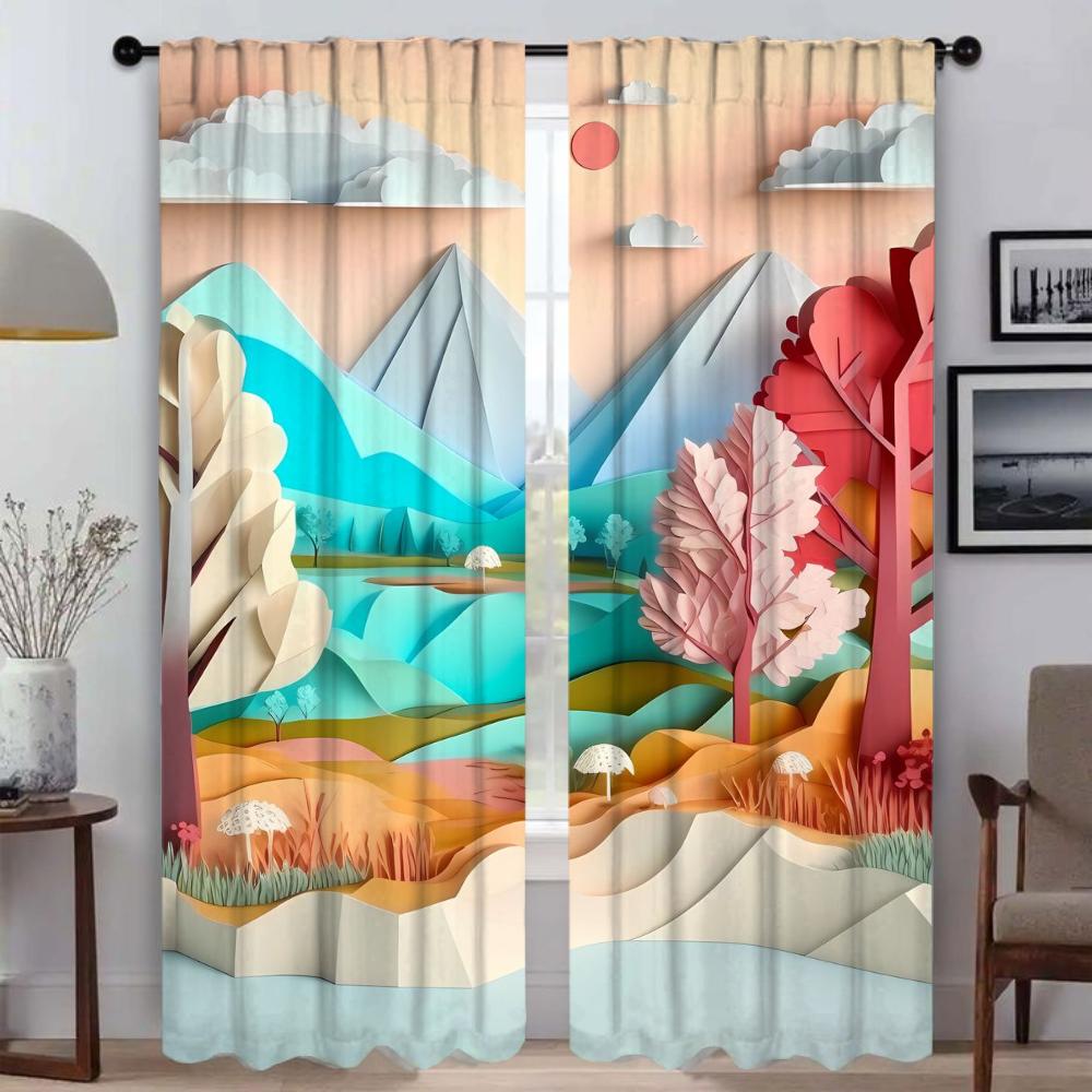 Шторы от комаров для камеры, ландшафтное искусство, современные шторы для гостиной, 2 шт., тюль для спальни, шторы W50xH70cmx2pcs-CL