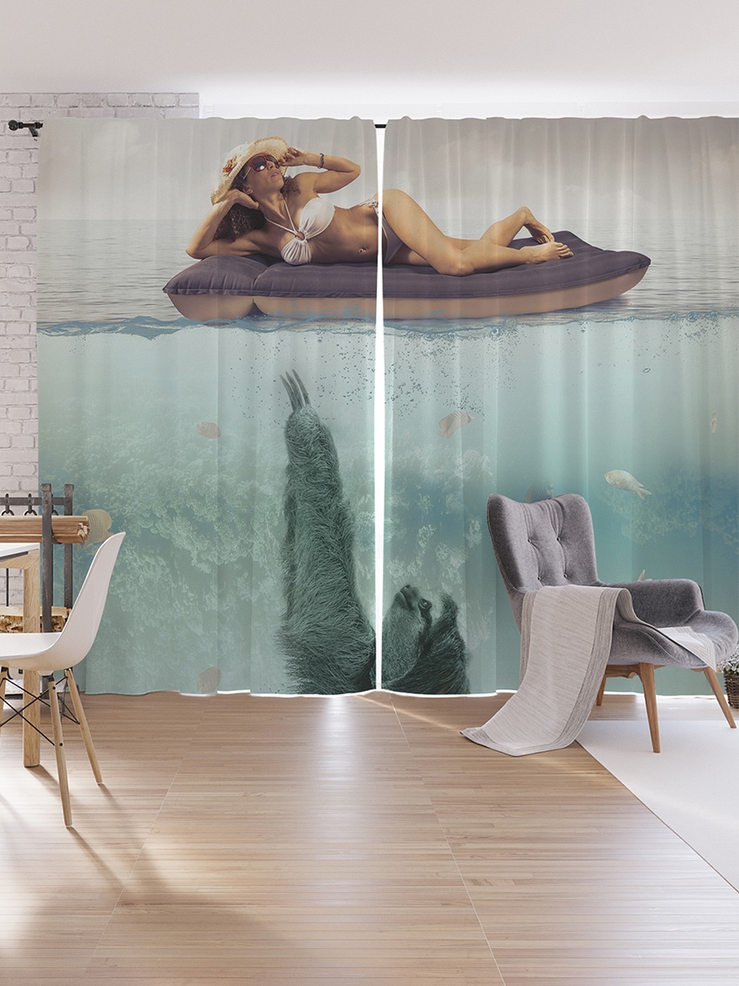 Шторы под лён JoyArty "Девушка на море", серия Oxford DeLux, 340х265 см, Девушка на море