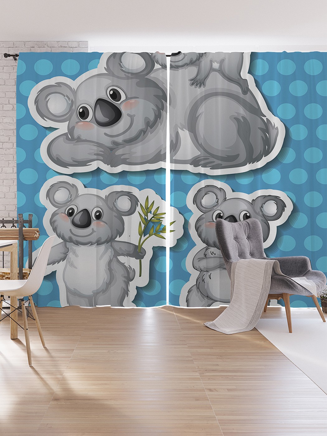 Шторы под лён JoyArty "Дружные коалы", серия Oxford DeLux, 340х265 см, Дружные коалы