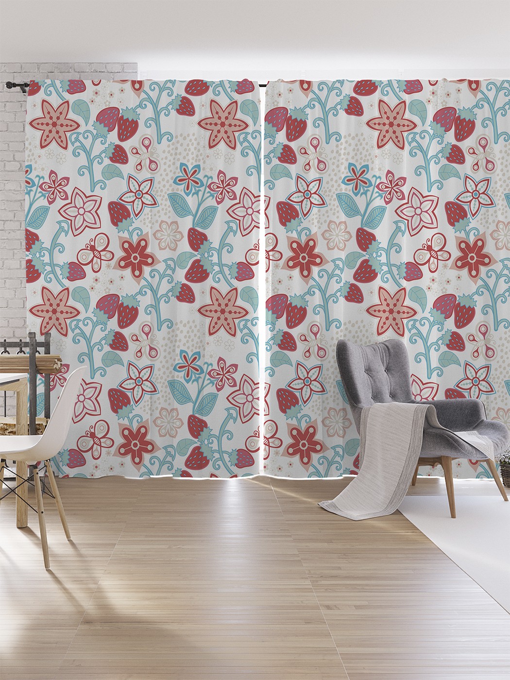 Шторы под лён JoyArty "Земляничная поляна", серия Oxford DeLux, 340х265 см, Земляничная поляна