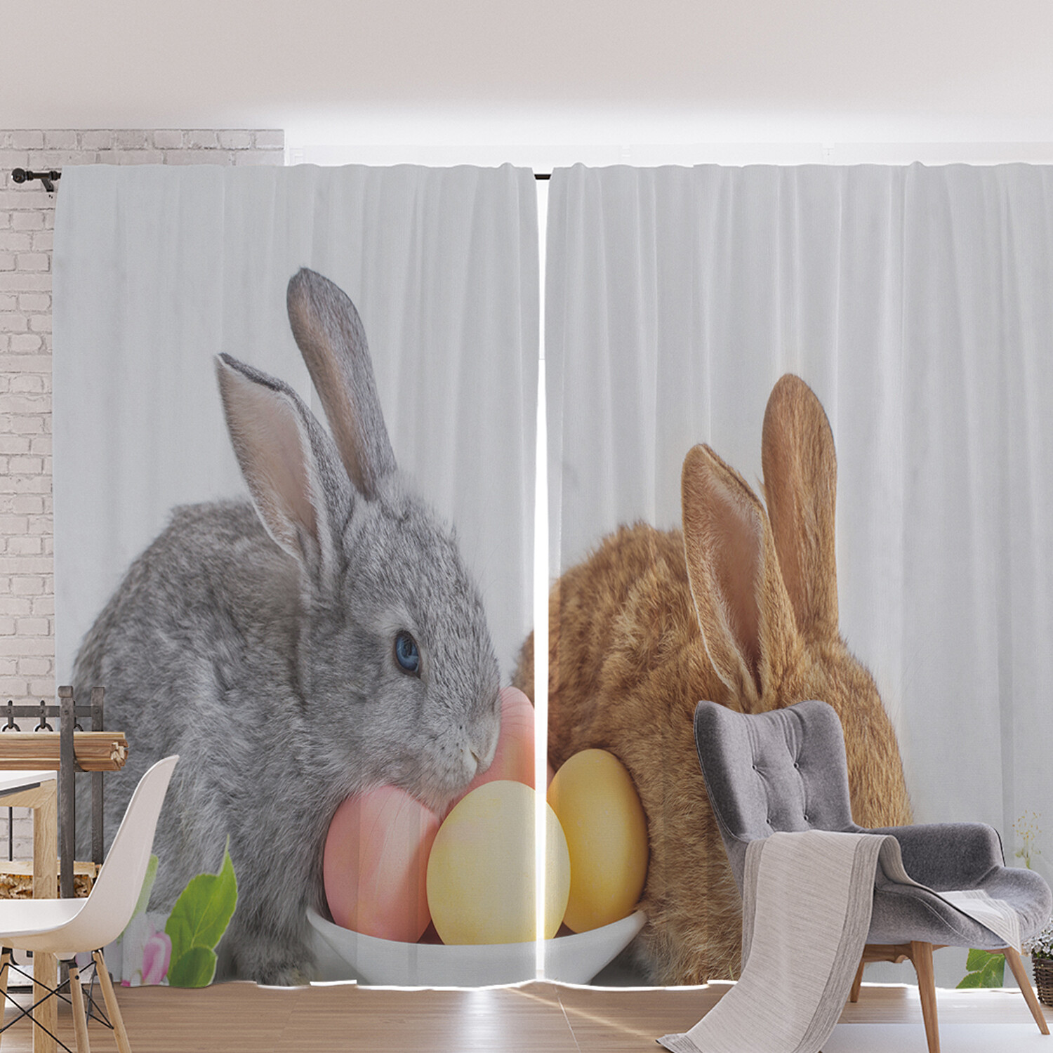 Шторы под лён JoyArty "Кролики с пасхальными яйцами", серия Oxford DeLux, 340х265 см, Кролики с пасхальными яйцами