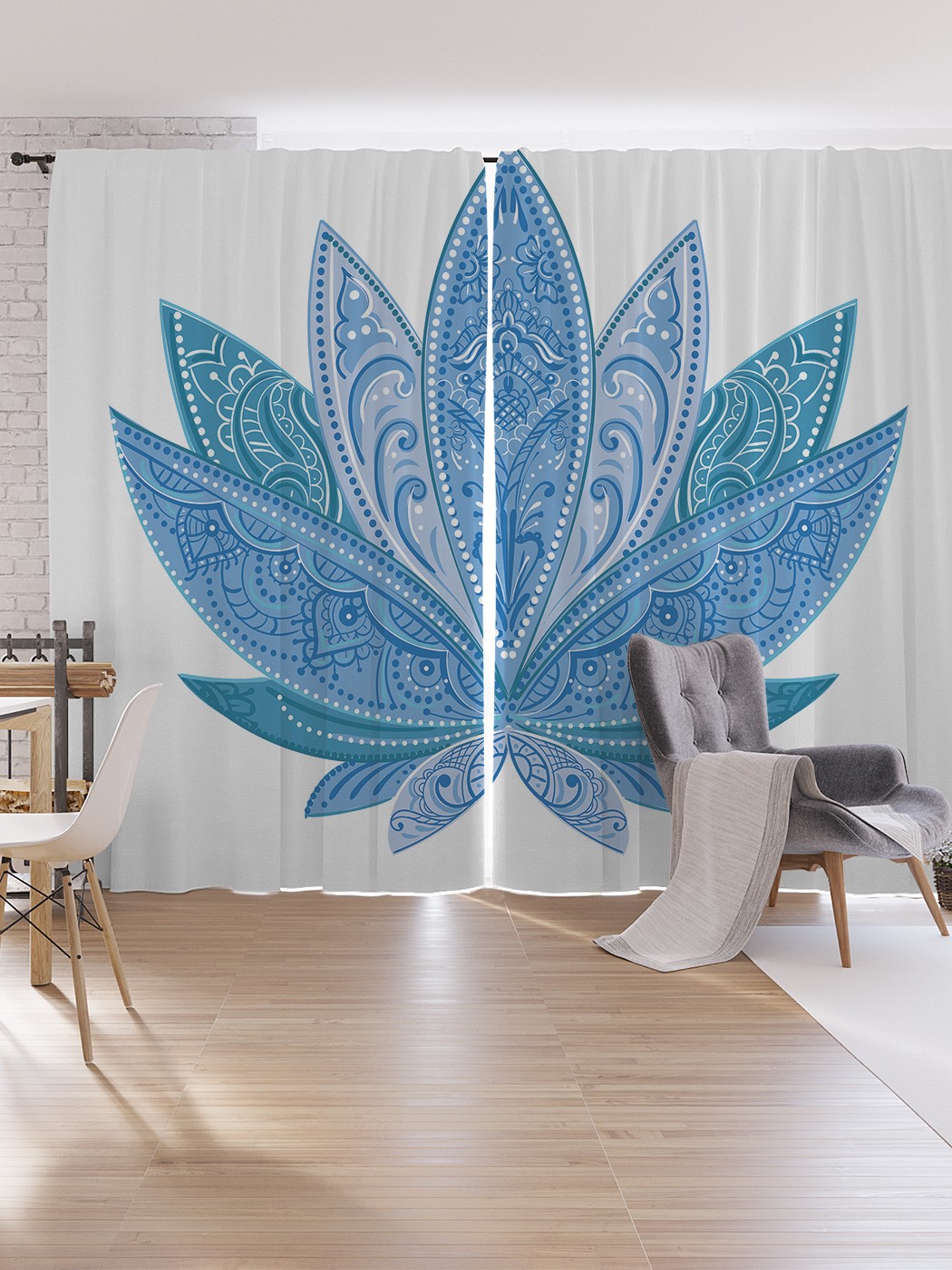 Шторы под лён JoyArty "Небесный лотос", серия Oxford DeLux, 340х265 см, Небесный лотос