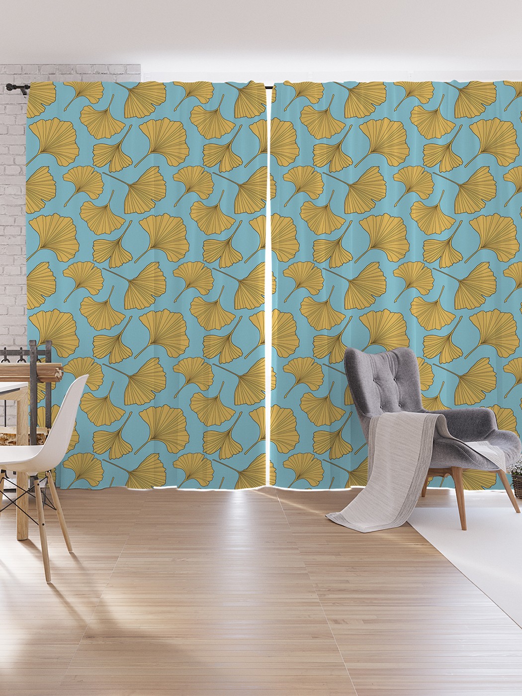 Шторы под лён JoyArty "Осенние листья гинкго", серия Oxford DeLux, 340х265 см, Осенние листья гинкго