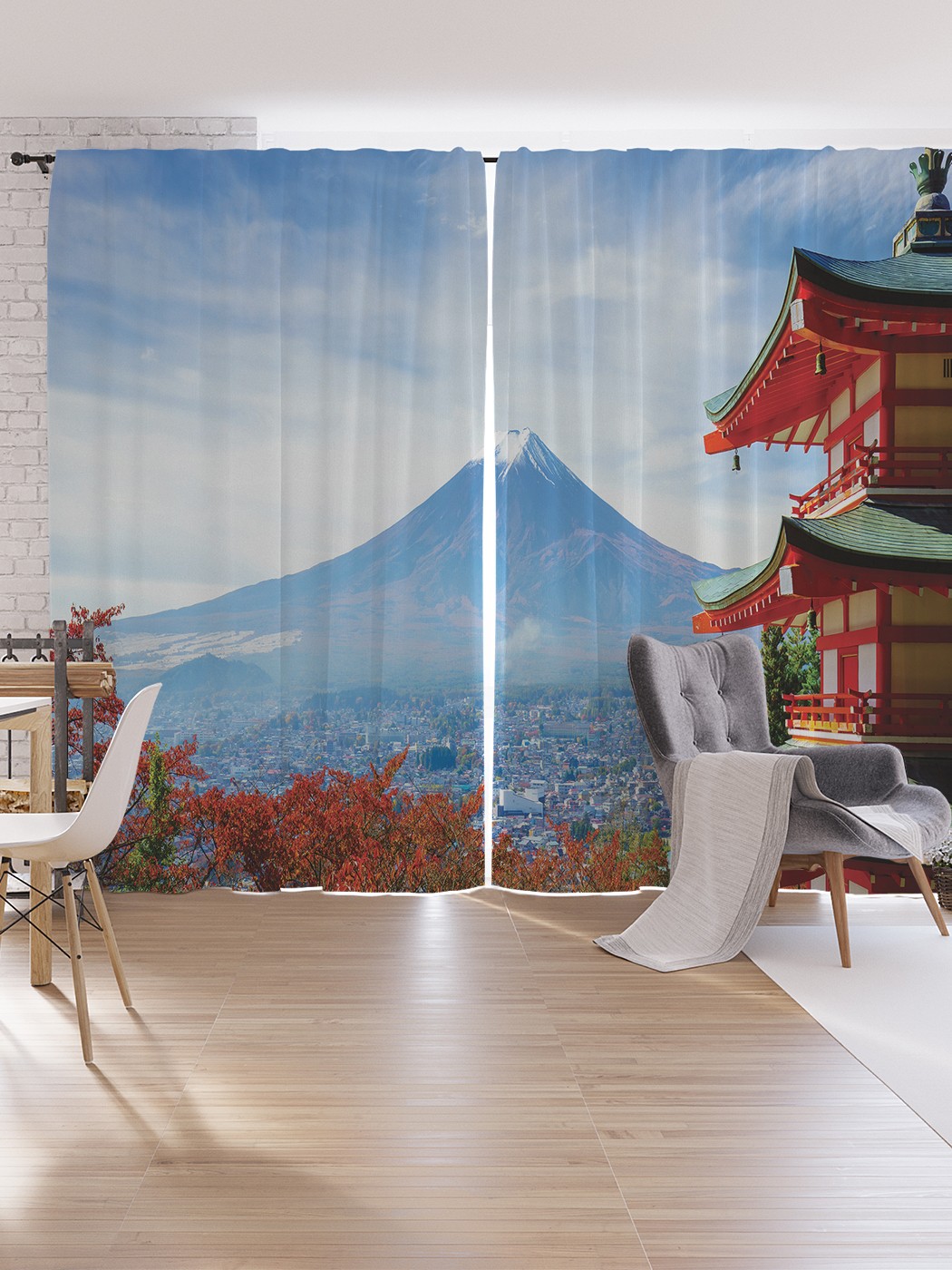 Шторы под лён JoyArty "Пагоды на фоне Фудзиямы", серия Oxford DeLux, 340х265 см, Пагоды на фоне Фудзиямы