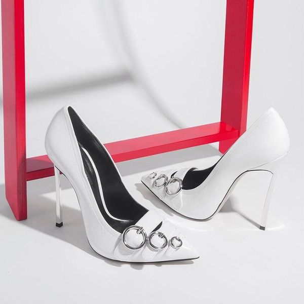 dress shoes french style three buckles pumps stiletto heels blade high pointed toe metal summer patent leather ol pump woman, Black