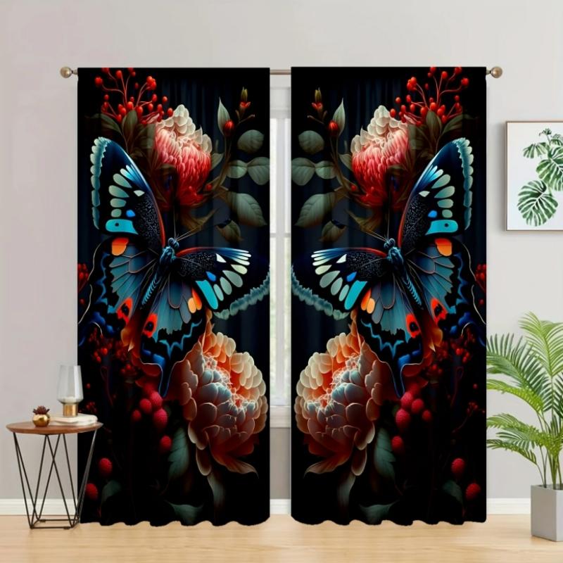 Шторы с принтом «Бабочки и цветы» для кабинета, кухни, гостиной, комнаты в общежитии, с карнизом, верхние оконные шторы, декор для спальни, новые W55 X H120cm X 2&Grommet Top