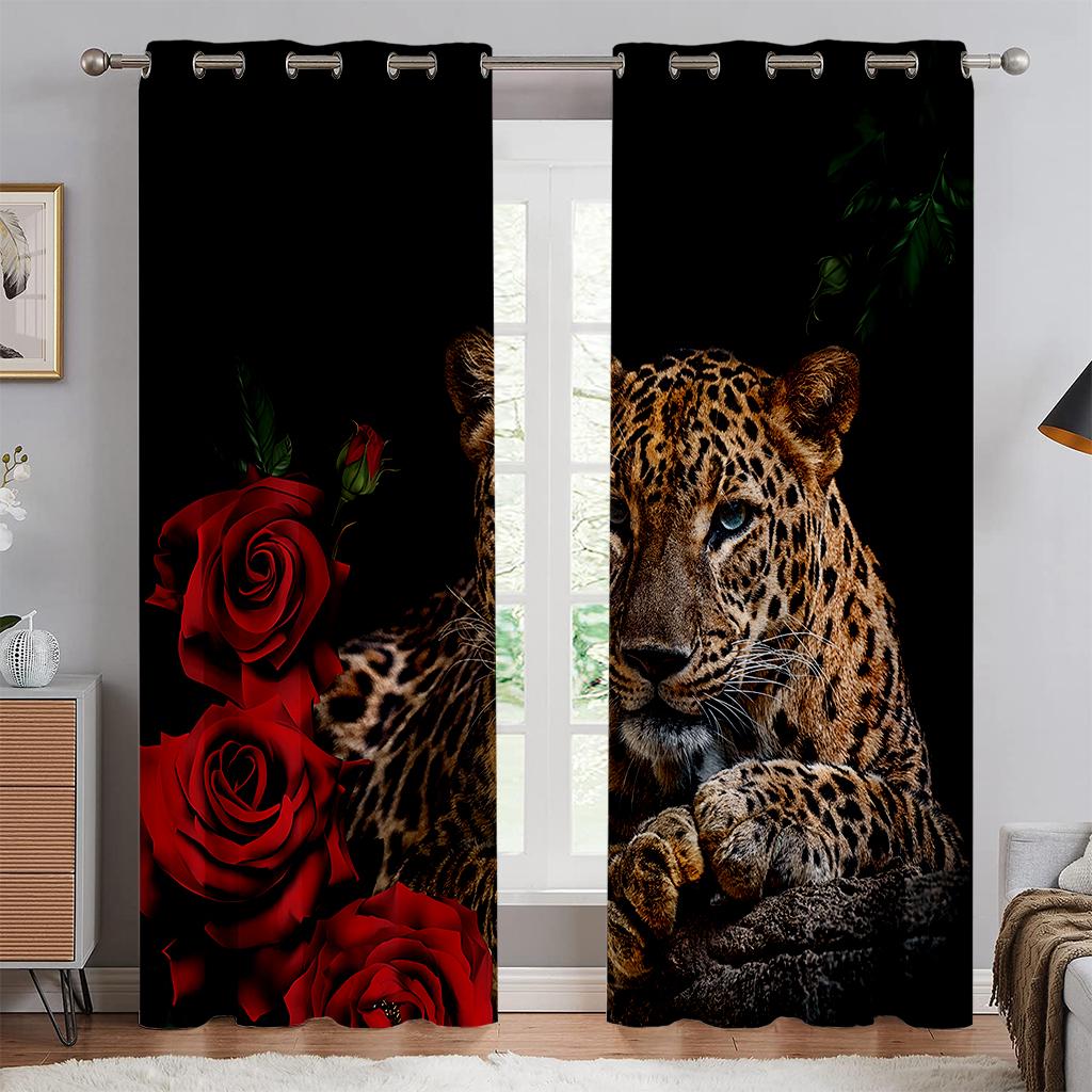Шторы с принтом роз, льва, тигра, животных, цветов, для спальни, офиса, кухни, гостиной, кабинета, домашнего декора, шторы из 2 панелей W50X130H(CM)X2PCS&Rod pocket