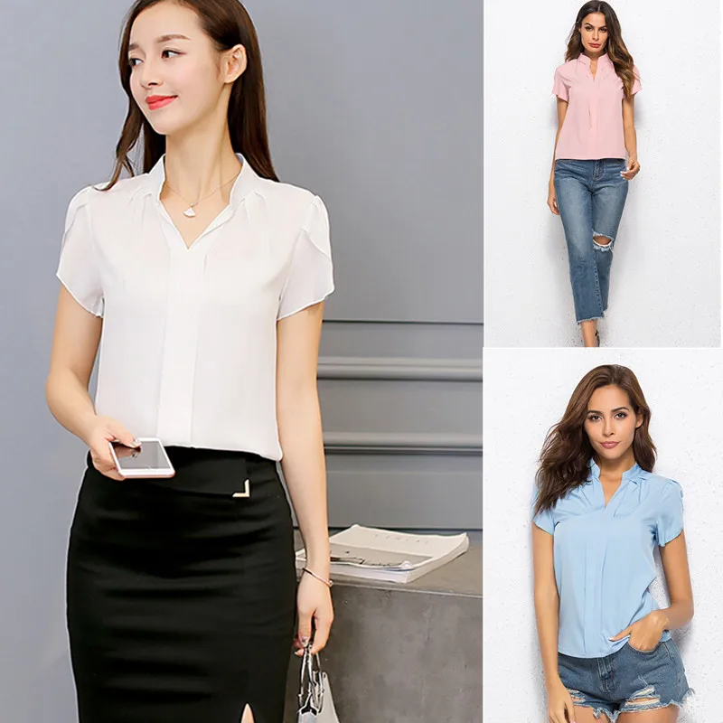 Женская шифоновая блузка, женские топы, элегантные женские деловые блузки с коротким рукавом, шифоновая одежда Размером 3XL, рубашка