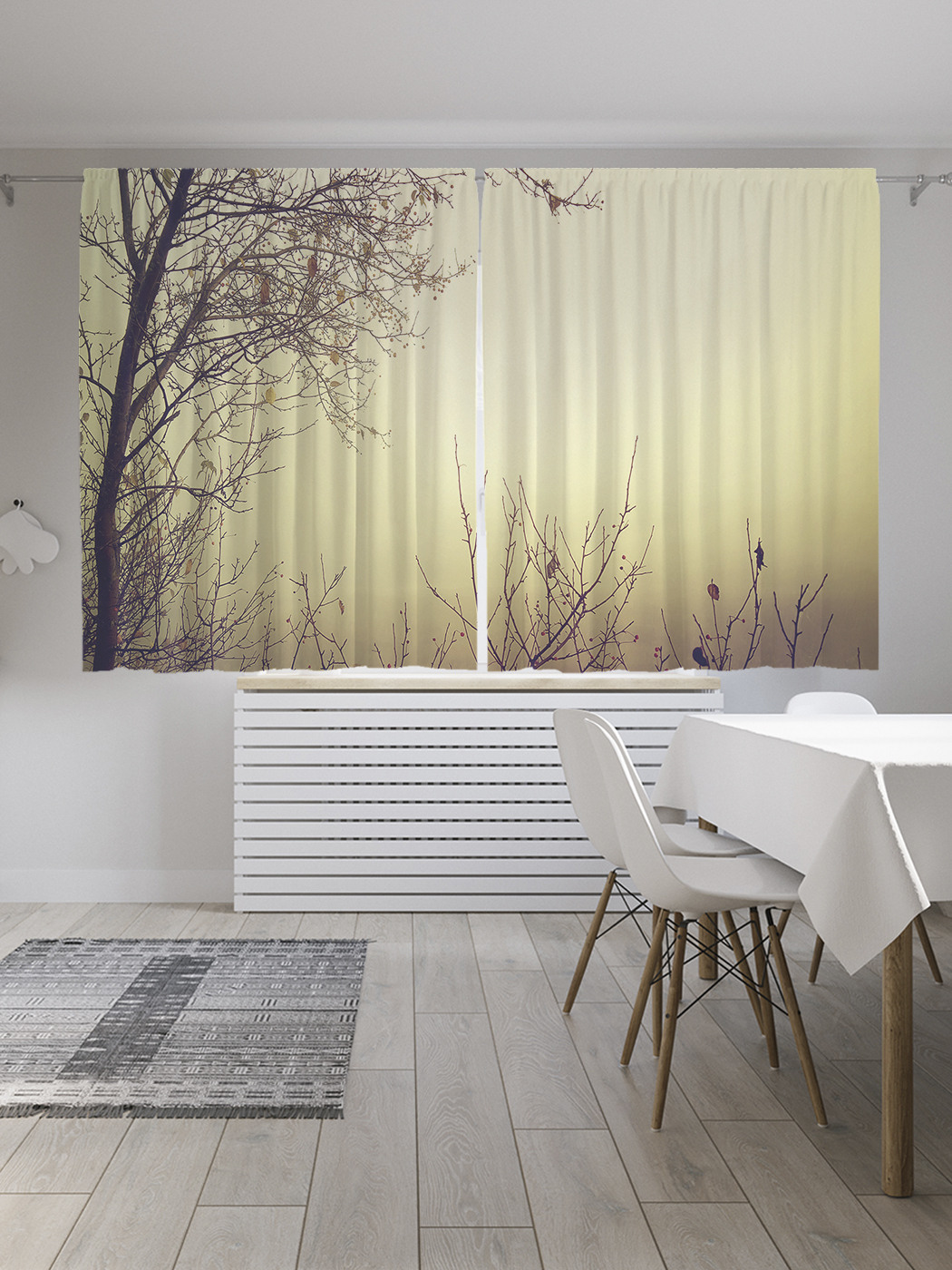 Шторы с фотопечатью JoyArty "Туман за ветками" из сатена, 290х180 см