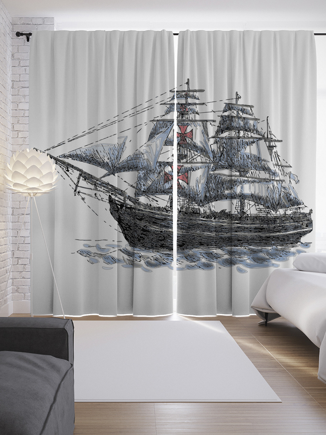 Шторы JoyArty с фотопечатью "Величественный корабль" из сатена, 290х265 см, Величественный корабль