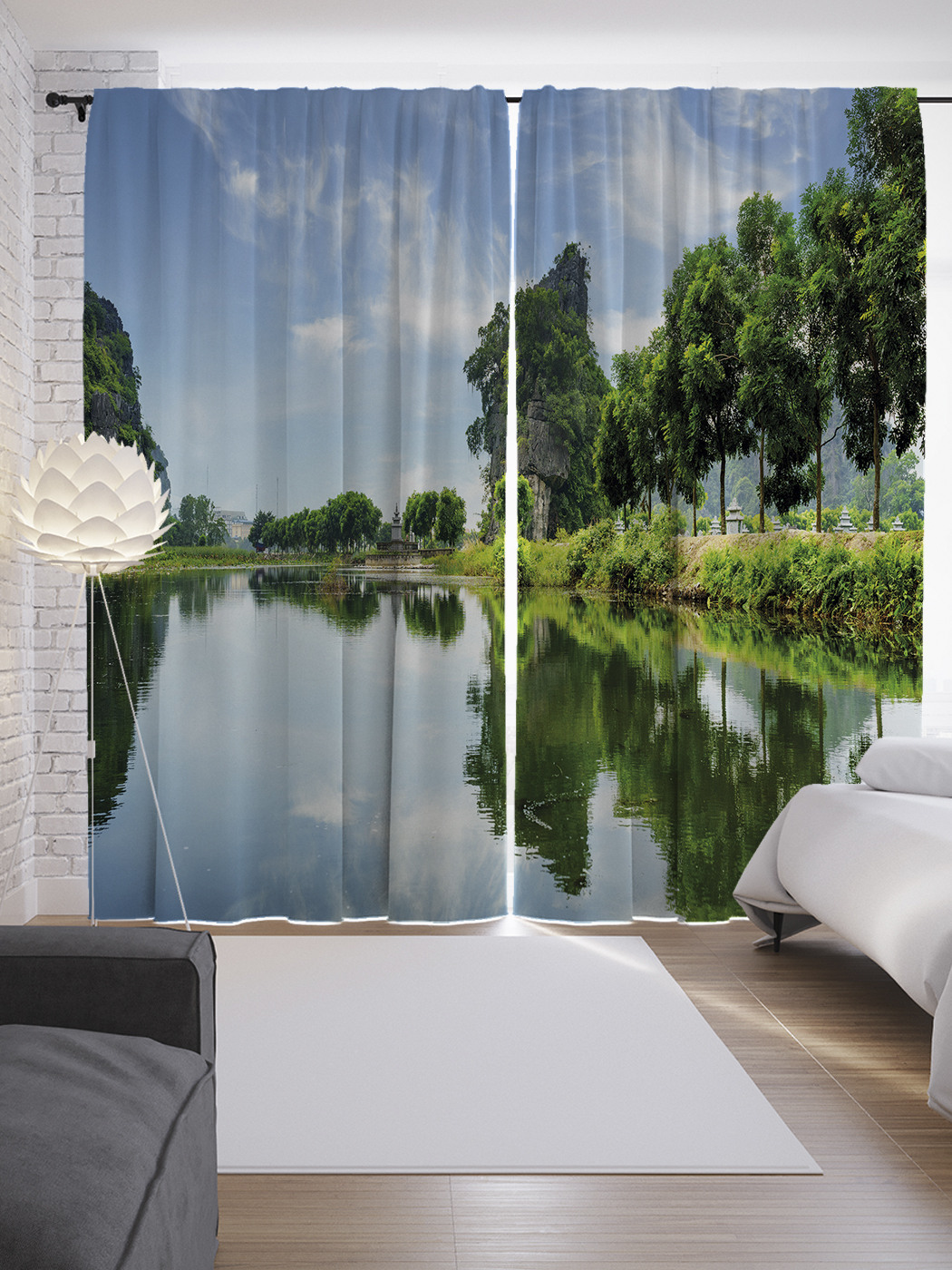 Шторы JoyArty с фотопечатью "Гладь озера" из сатена, 290х265 см, Гладь озера