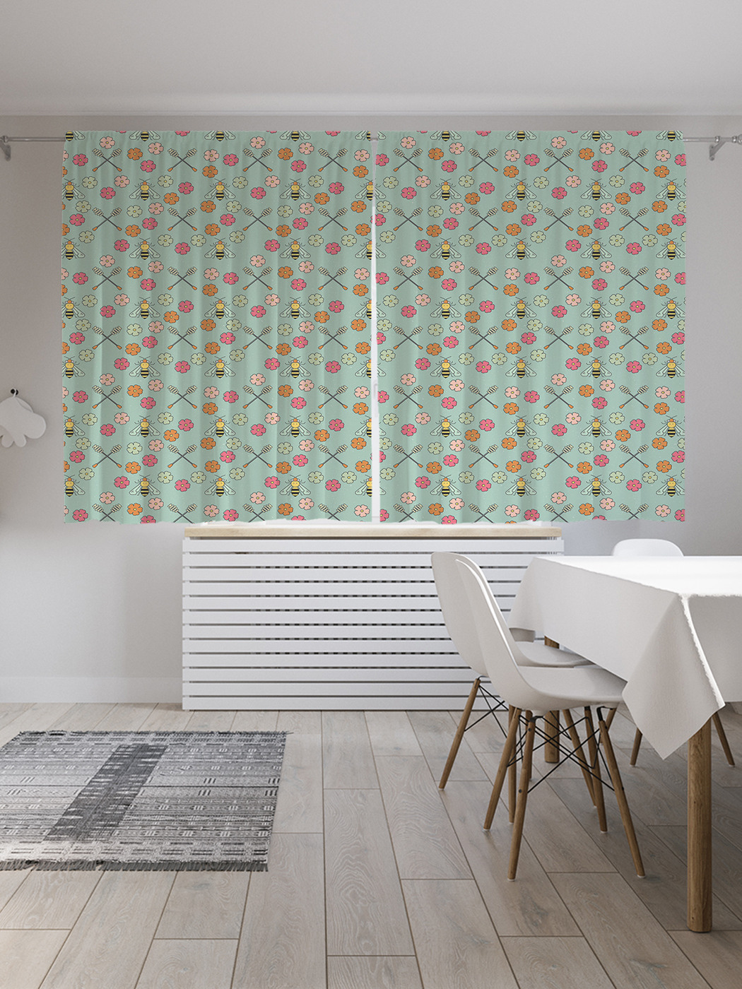 Шторы JoyArty с фотопечатью "Пчелы и цветы" из сатена, 290х180 см, Пчелы и цветы