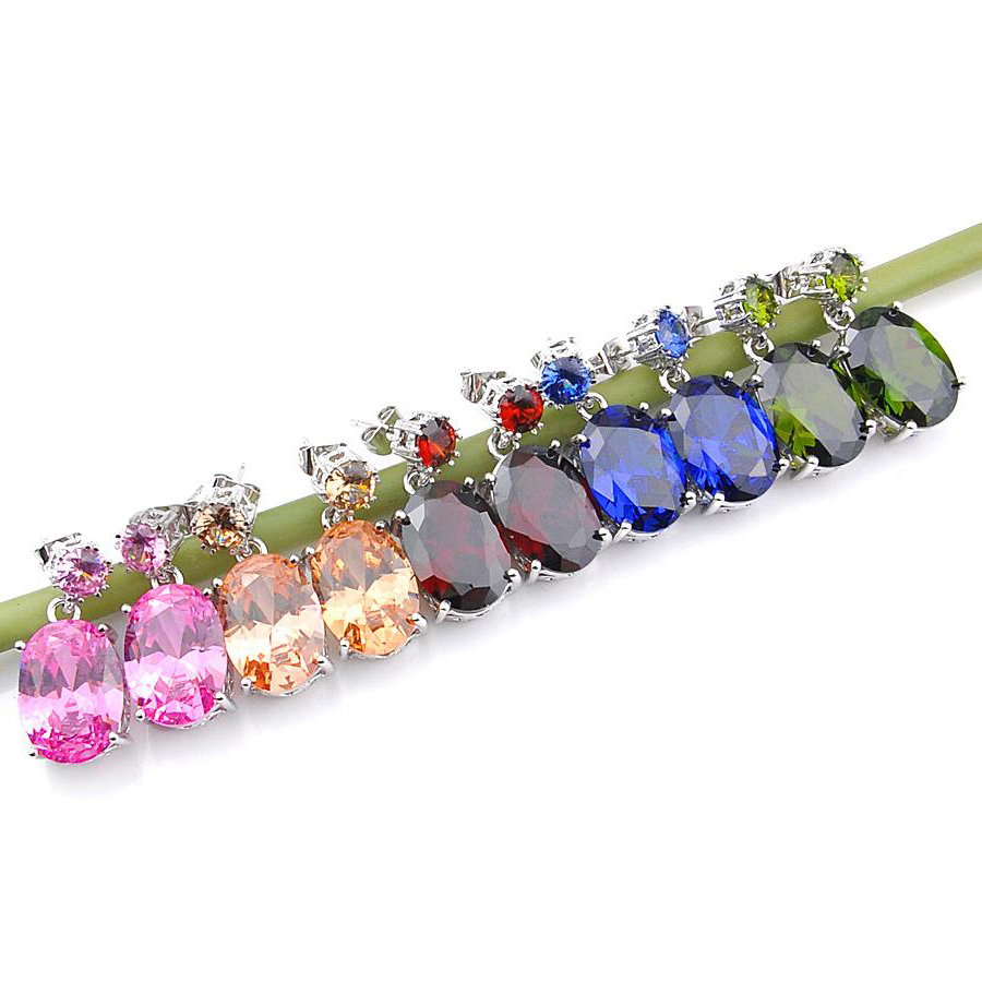 luckyshine valuable mix color cubic zirconia stud earrings silver 925 womans new oval morganite topaz garnet peridot vintage wedding jewelr