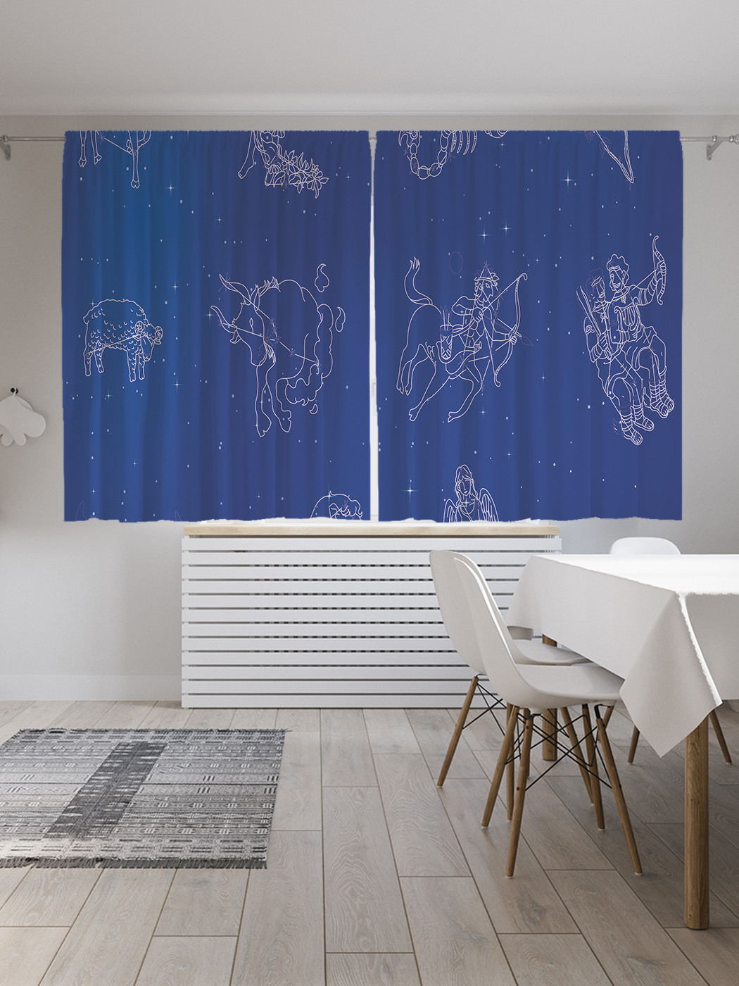 Шторы JoyArty с фотопечатью "Созвездия гороскопа" из сатена, 290х180 см, Созвездия гороскопа