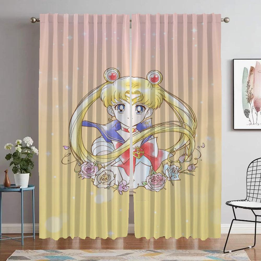 Шторы Sailor Moon для гостиной, занавески, перегородки, украшения на Хэллоуин, шторы для домашнего интерьера, 2 шт., для кухни, для детей W50xH70cmx2pcs-CL