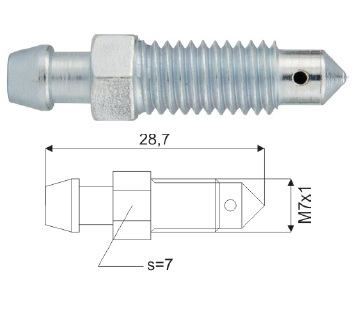 Штуцер прокачки тормозов М7*1, длина 29, ключ-7
