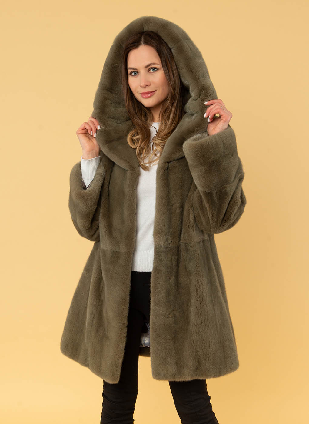Шуба женская Каляев 57205 зеленая 44, 57205