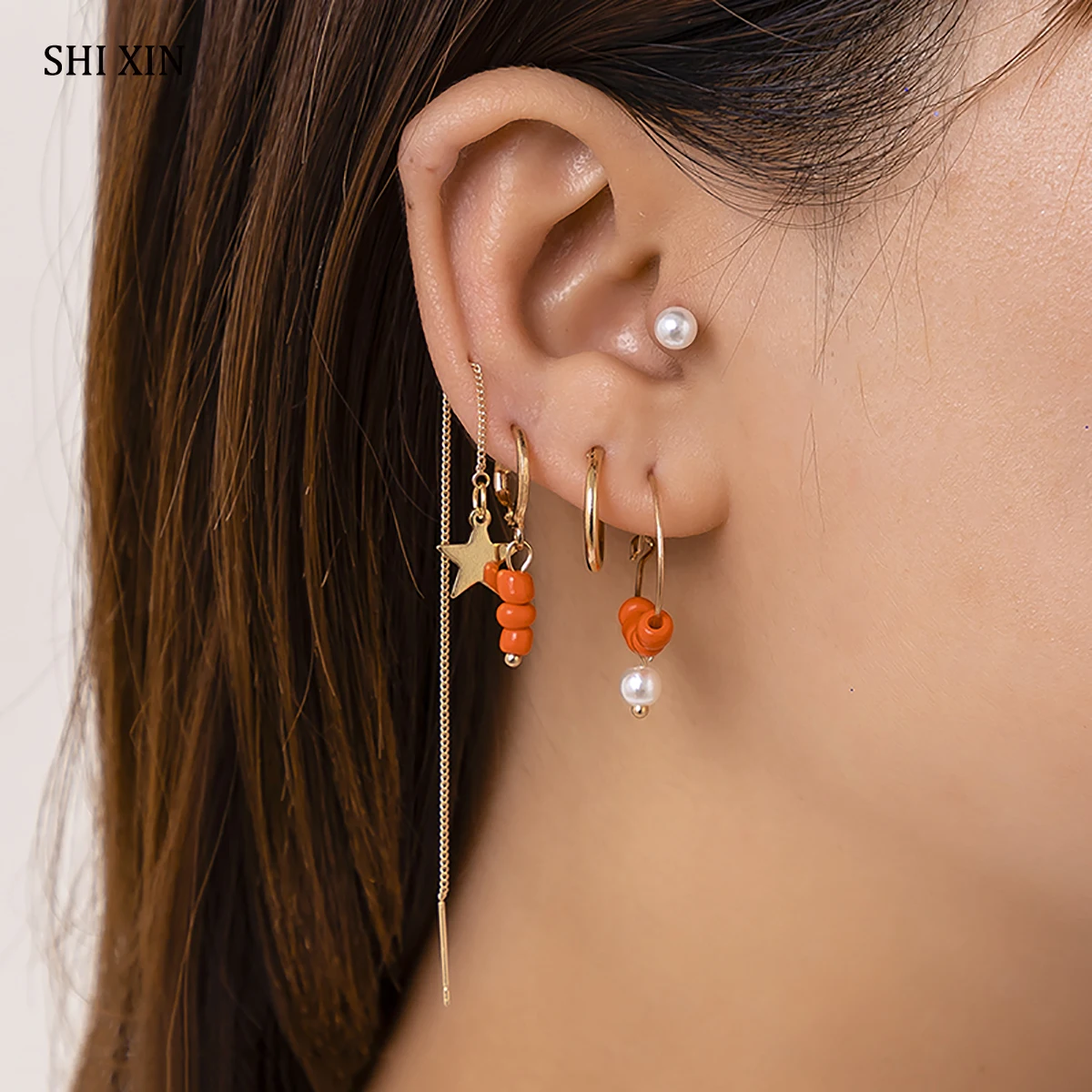 SHIXIN Boho Stars/Beads/Pearl Drop Earrings for Women Summer Trendy Small Round Earrings Set Jewelry Fashion Earrings 2021 Gifts