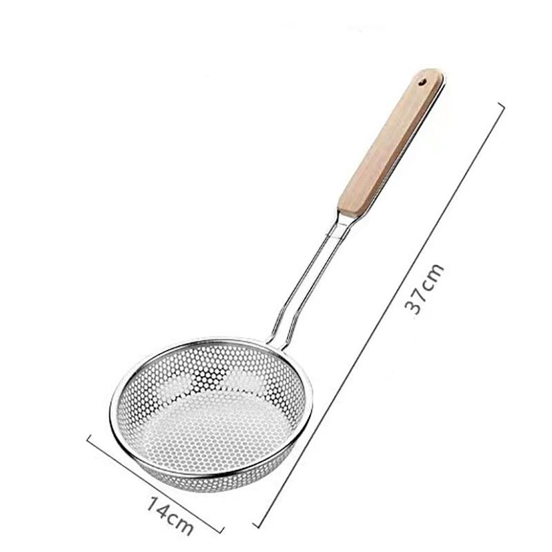 Шумовка из нержавеющей стали с термостойкой деревянной ручкой - сетка для масляного фильтра, кухонный инструмент, многоцелевая прочная кухонная утварь S