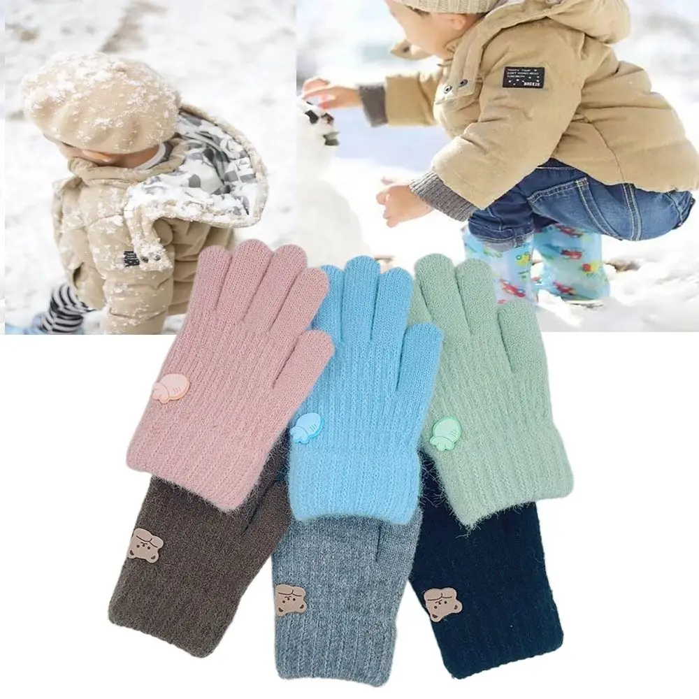 Теплые осенне-зимние перчатки, плотные ветрозащитные вязаные перчатки, грелка для рук, защита от холода, Детские перчатки для мальчиков и девочек